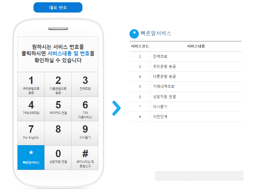 대표번호는 3개 정도가 있으며 대표번호를 누른 후 아래 서비스 내용을 보고 번호를 누르면 됩니다.
