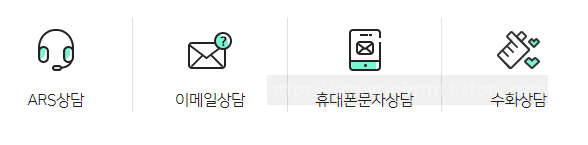 고객센터 홈페이지 첫화면입니다. 가장 처음 나오는 화면에는 검색어를 입력하면 검색어와 관련된 질문과 답변이 나옵니다. 만약 검색어를 입력했는데 원하는 질문과 답변이 없는 경우에는 ARS 상담, 이메일 상담, 휴대폰 문자상담, 수화상담을 이용할 수 있습니다. 하단에는 고객센터를 바로 이용할 수 있도록 이용방법에 대해 간단하게 알려드립니다.