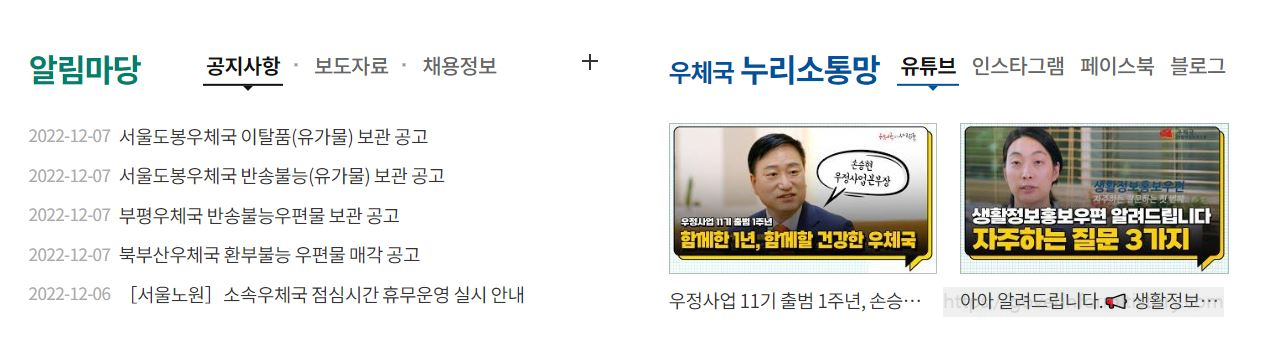 우정사업본부 홈페이지 바로가기