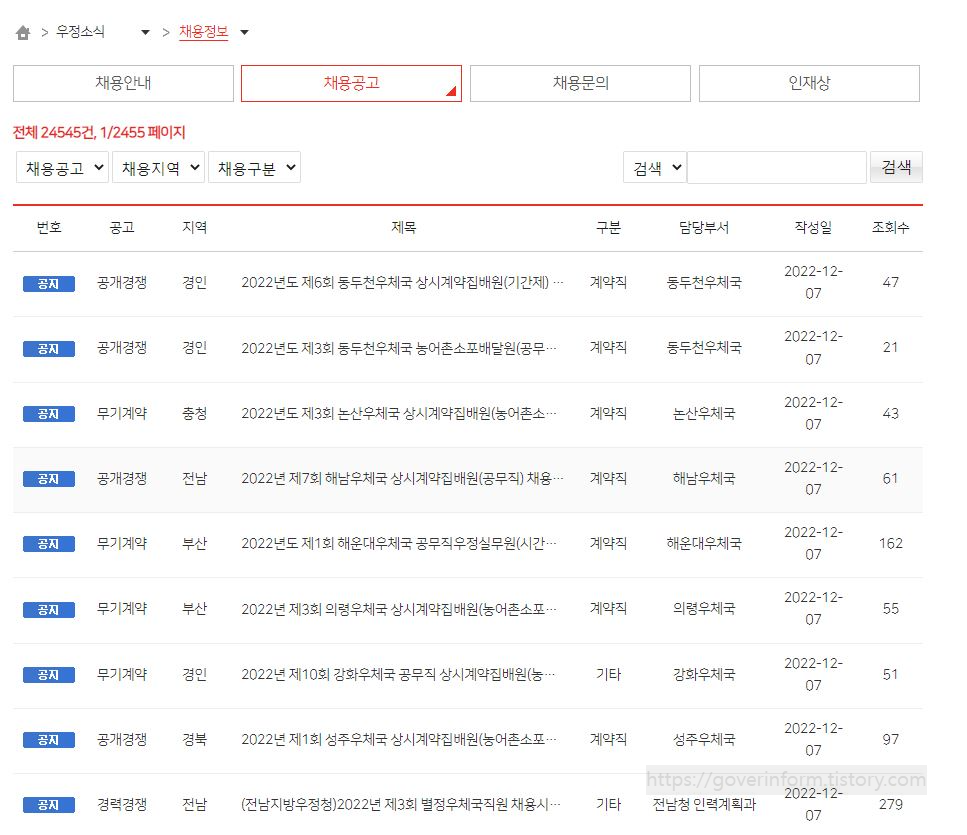 우정사업본부 채용공고 바로가기