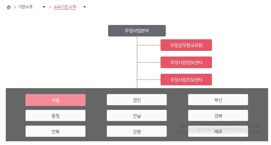 우정사업본부 홈페이지 바로가기 조직도 직원검색 채용정보
