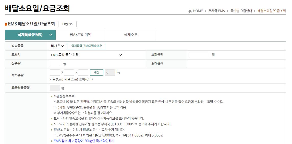 아울러 국제우편 이용시 이용요금도 상세하게 조회할 수 있습니다.
