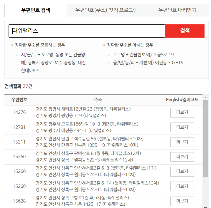 우편번호 검색