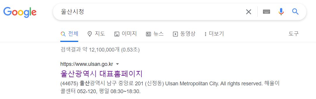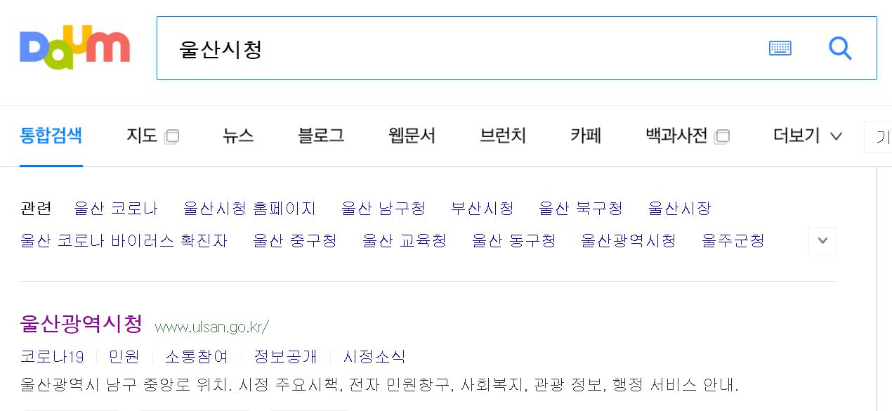 먼저 포털 검색창에 울산시청 홈페이지를 검색하면 주소가 나옵니다.