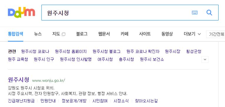 원주시청 홈페이지에 접속하려면 포털사이트검색창에 원주시청을 입력하면 바로 주소가 나옵니다. 아래 이용하기 링크를 이용하셔도 무방합니다.