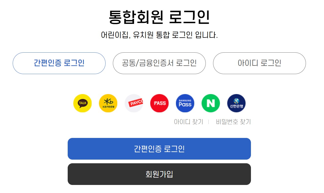 - (간편 인증 로그인) 로그인 후 어린이집·유치원 신청 바로 가능 (공동·금융인증서 등록 불필요)
