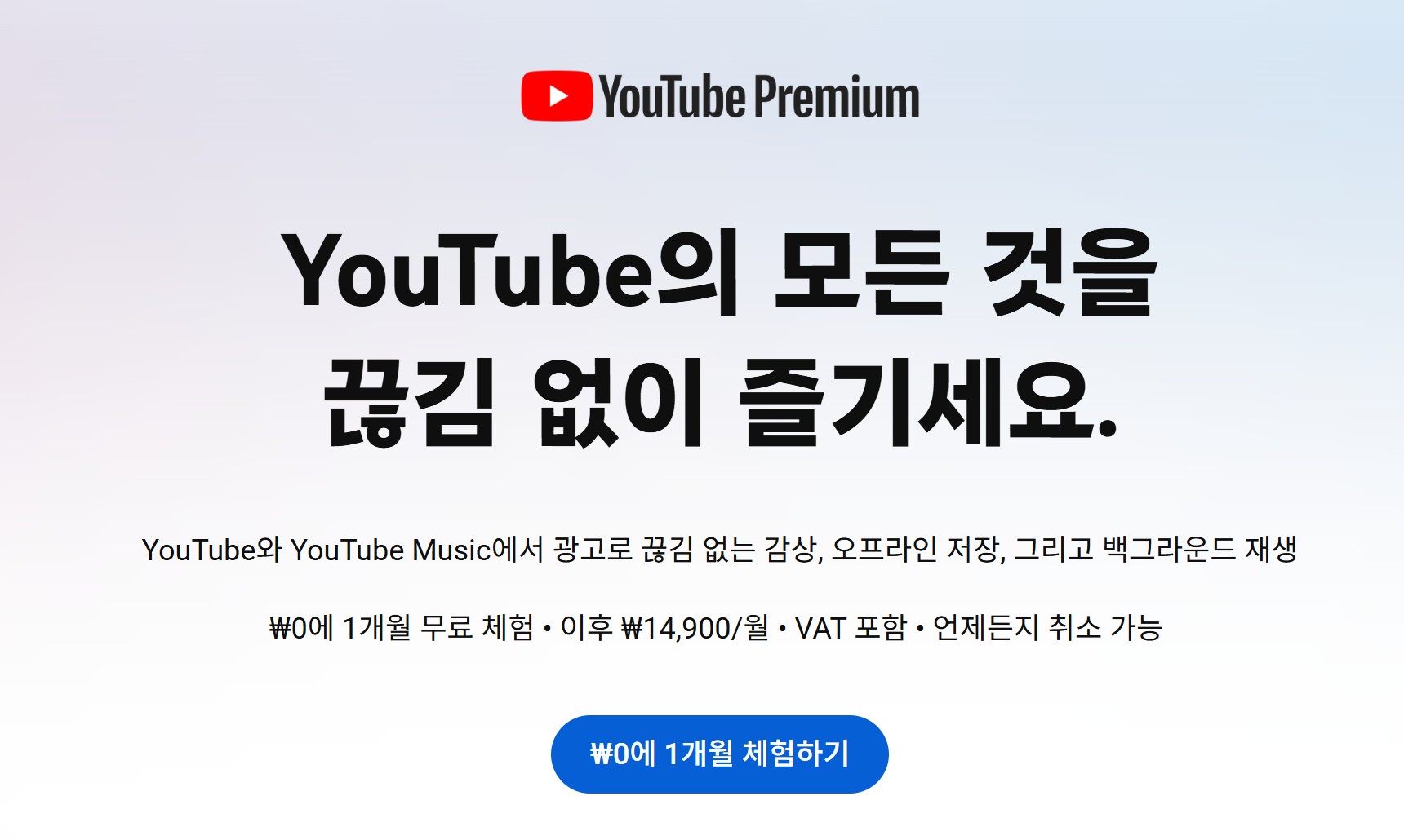 유튜브는 프리미엄 요금제 1개월 무료 체험을 진행하고 있으니