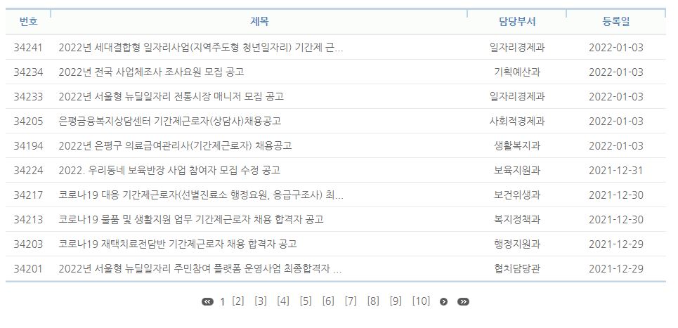 은평구청 홈페이지 바로가기 (채용정보, 조직도, 생활정보, 폐기물처리방법안내)