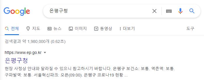 은평구청 홈페이지는 포털 검색창에 은평구청만 입력해도 주소창이 바로 나옵니다. 네이버 다음 구글 빙 마이크로소프트 네이트 등 어디든 평소 이용하는 곳 검색창에 입력하시면 됩니다.