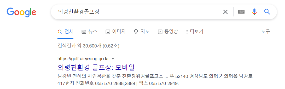 포털검색창에 의령친환경골프장을 입력하거나 하단 링크를 이용해서 접속하면 됩니다.