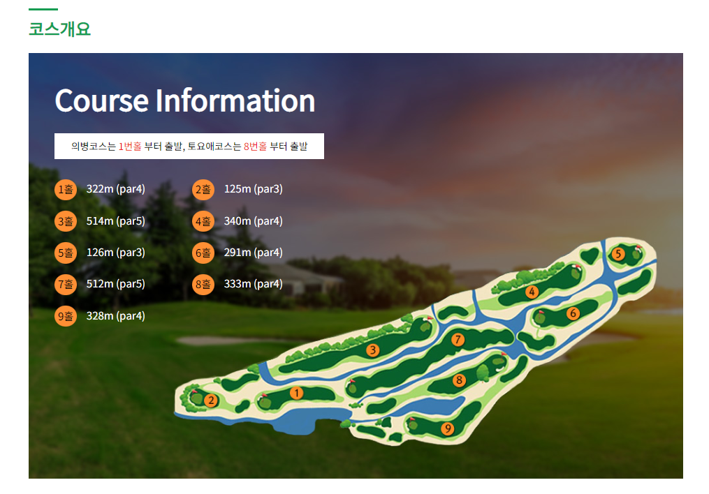 홈페이지에는 코스와 시설에 대한 소개가 되어있습니다.