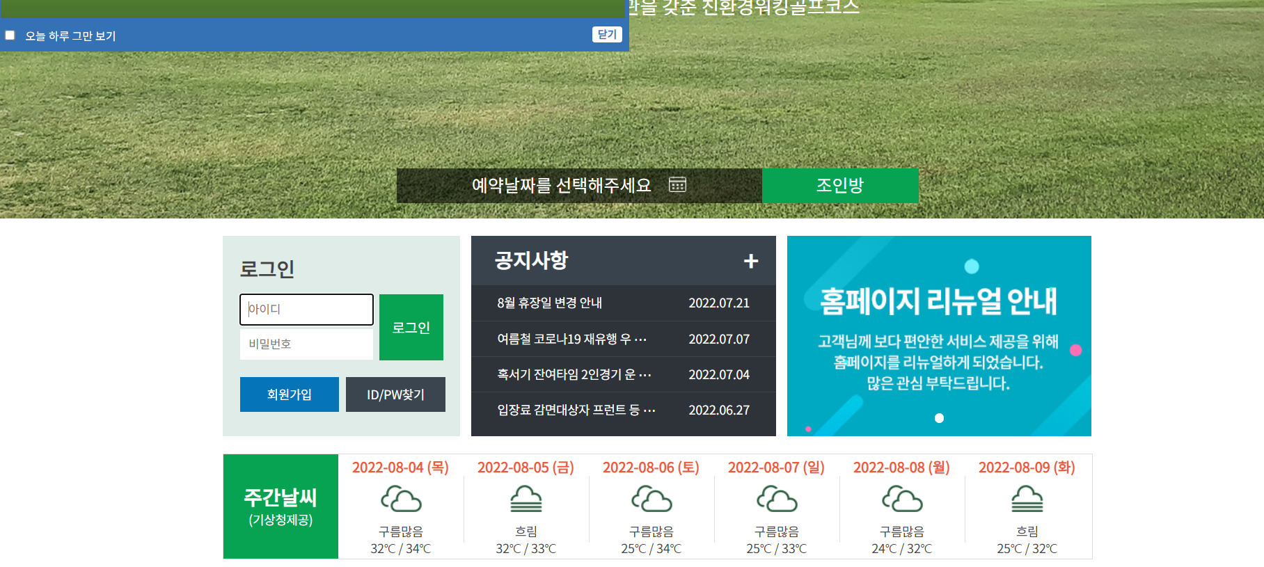 아래는 의령친환경골프장 홈페이지 첫화면 즉 랜딩페이지입니다.