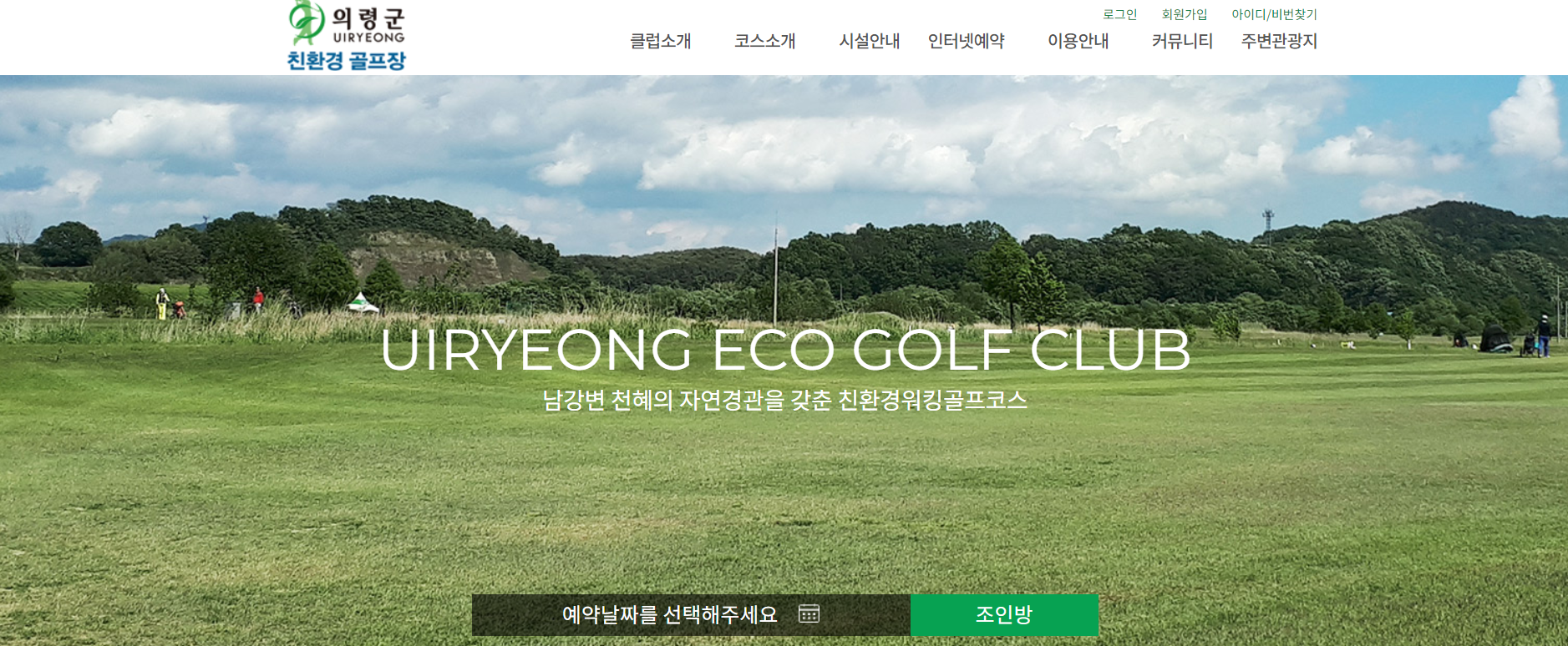 아래는 의령친환경골프장 홈페이지 첫화면 즉 랜딩페이지입니다.