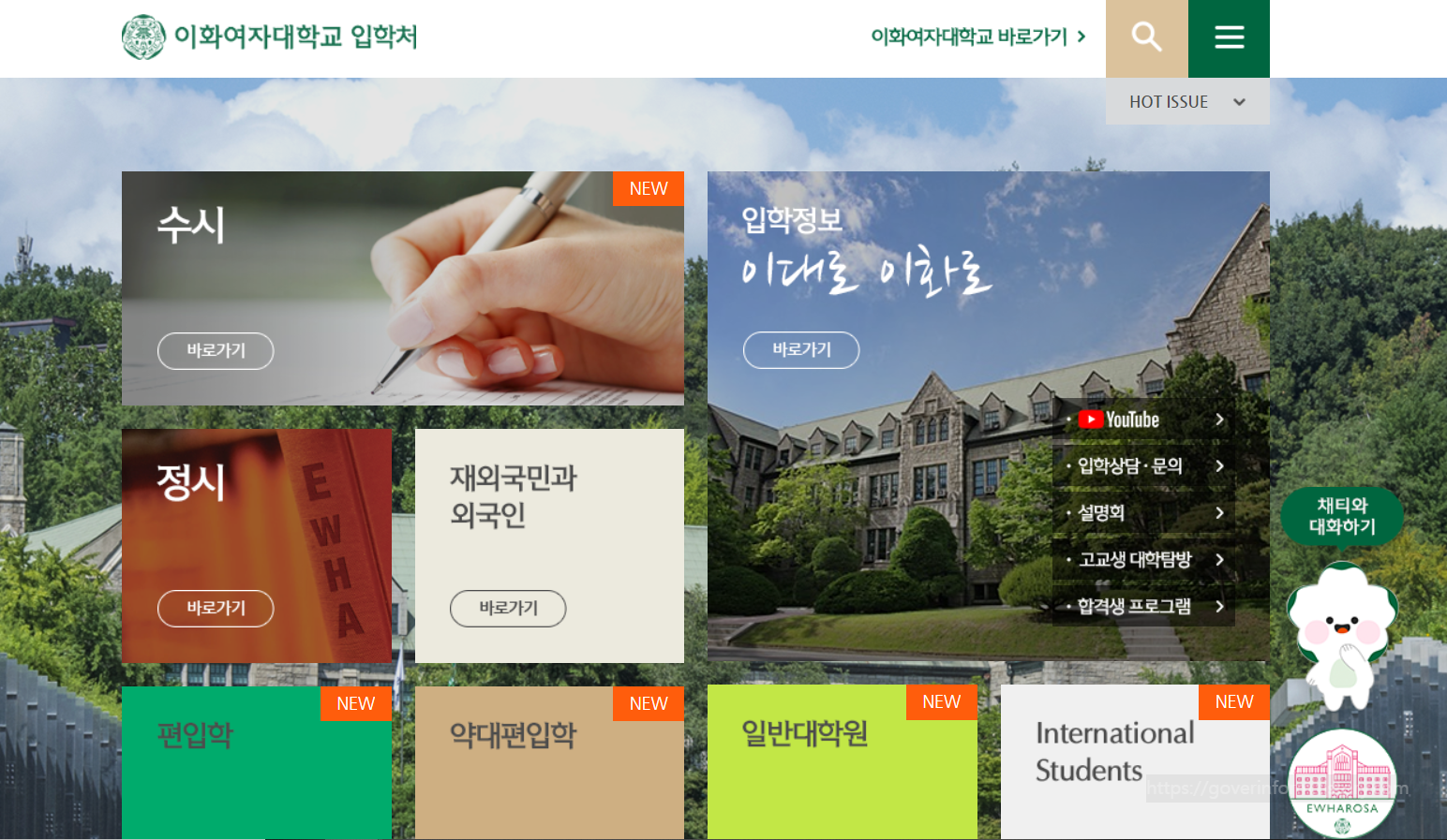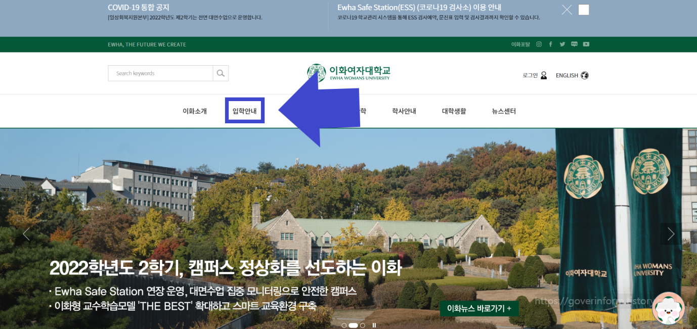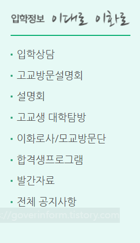 이화여대 입학처 홈페이지 바로가기=>https://www.ewha.ac.kr/ewha/index.do
