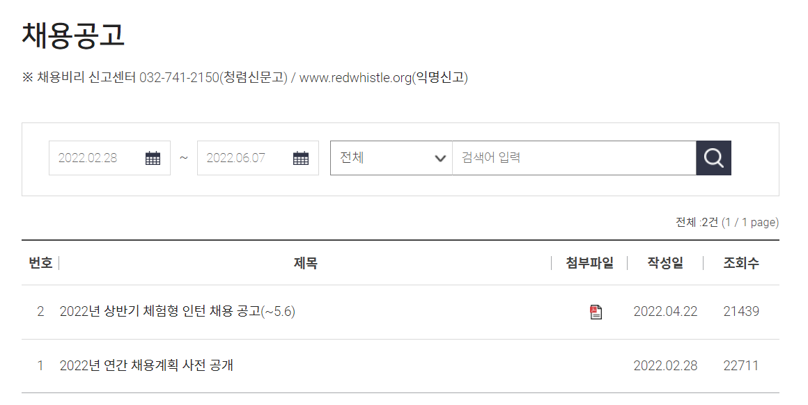 공고입니다. 연간 채용계획을 참고하면 도움이 될것입니다.