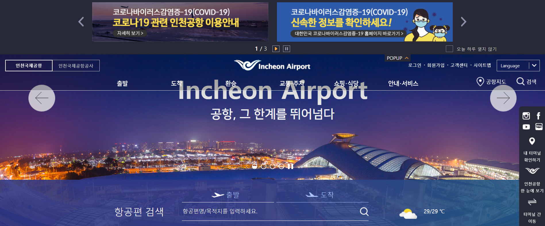 다음은 인천국제공항 홈페이지 입니다.