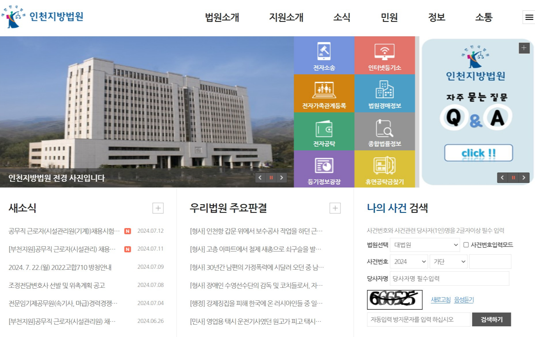 인천지방법원 민원실 전화번호 홈페이지 바로가기