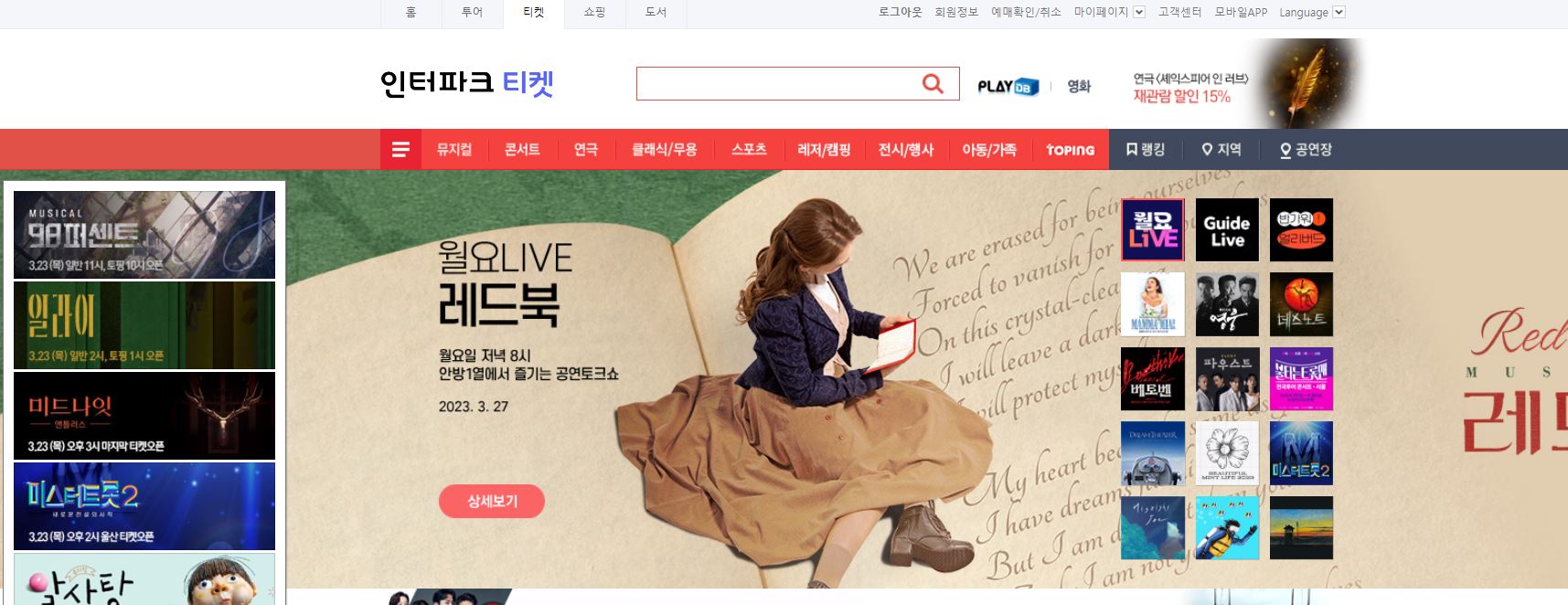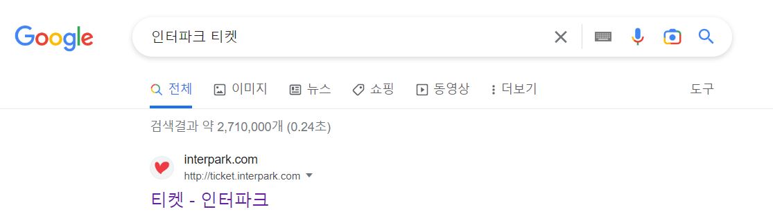 구글 검색창에 인터파크 티켓을 입력하면 인터파크 티켓 주소가 나오고 여기에 접근하면 인터파크 티켓 홈페이지 이용이 가능합니다.