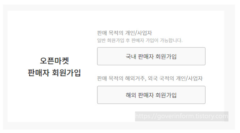 2) 사업자판매자 : 사업자 등록증이 있는 사람이면 가입 가능