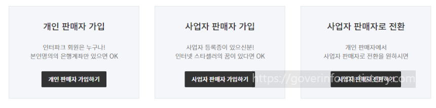 1) 개인판매자 : 인터파크 회원가입만 되어있으면 누구나 가입 가능