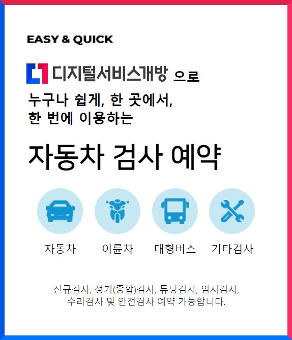 • 차량 번호, 차주 정보, 연락처 등 자동차 검사에 필요한 정보를 사전에 준비하세요.