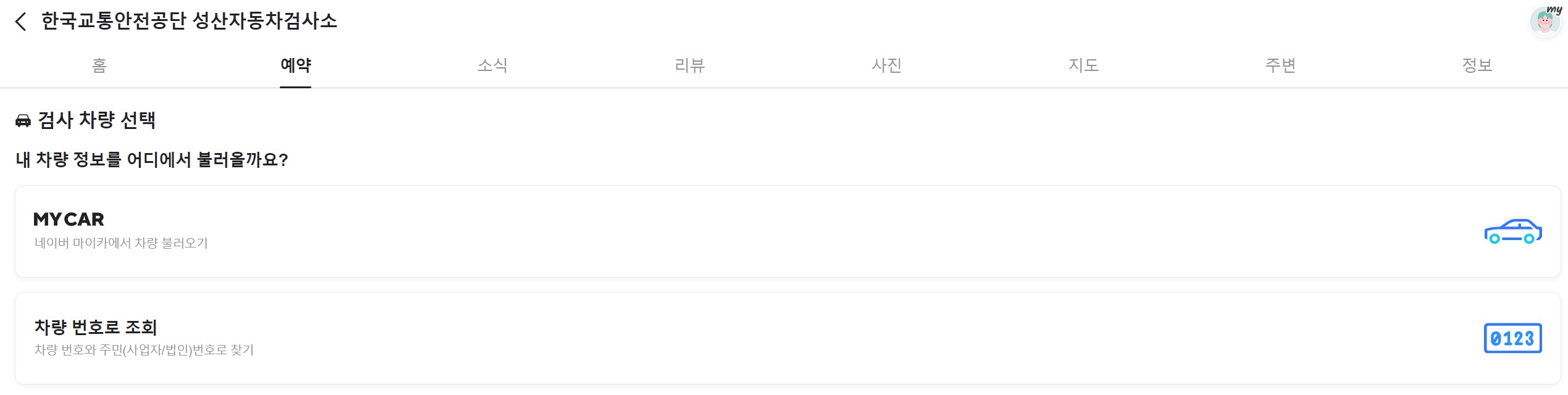 2. 내 차 예약 가능한 검사소 찾기 >에서 가까운 검사소를 찾습니다.