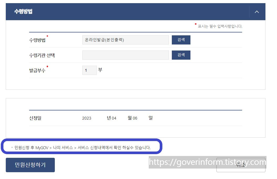 발급방법은 두 서류 모두 동일하며 발급버튼 터치 시 민원 신청하는 창으로 이동한다. 신청방법은 인터넷발급의 경우 정부 24에서 가능하며 처리는 바로 되며 별도의 비용이 들지 않는다.