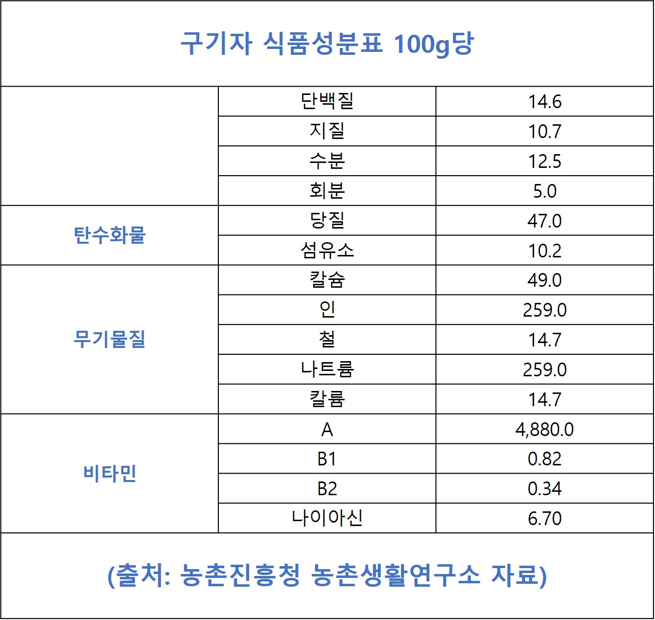 구기자는 현대인들에게 아주 적합한 효능을 지닌 슈퍼푸드입니다. 어쩌면 자연이 빚어낸 보석 같은 열매라고 할 수 있습니다. 지치고 피로한 일상에 건강과 활력을 더해주는 구기자는 효능은 물론 맛도 뛰어납니다.
