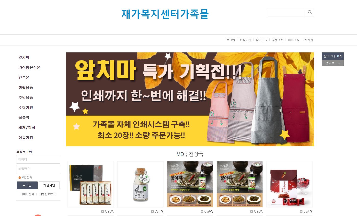 재가복지센터 가족몰 홈페이지