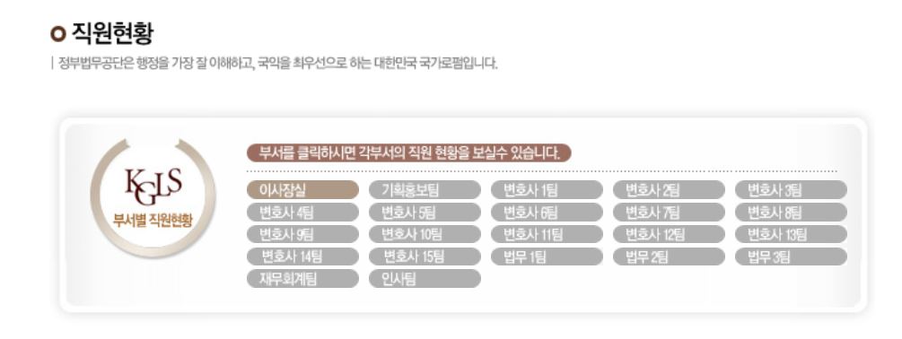 5. 선임절차 구성원 소개 법령 검색 및 판례 검색 검찰보고 대행 조직도는 홈페이지 방문하여 가장 자주 찾는 메뉴입니다.