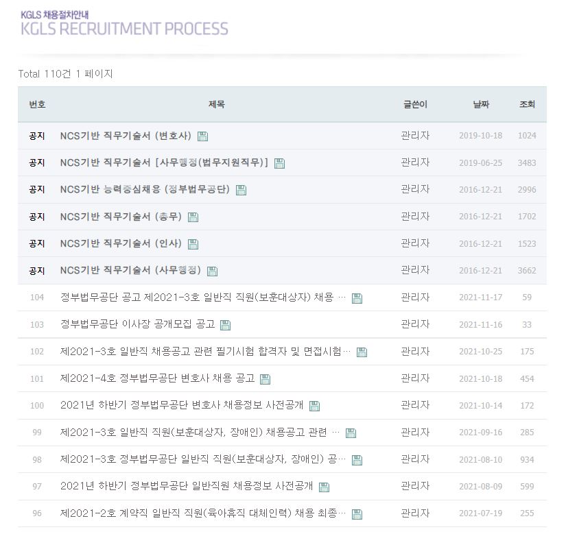 6. 정부법무공단 채용공고도 확인할 수 있습니다.