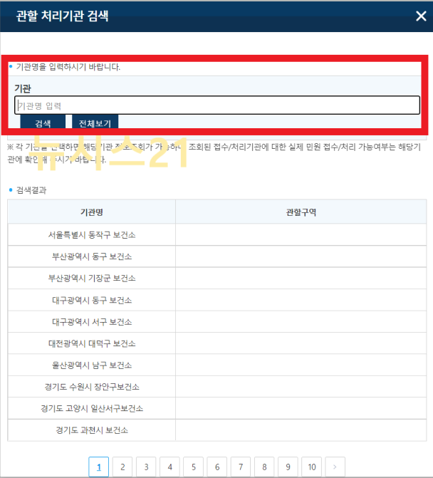 하단 링크에 접속하면 관할 처리기관(보건소) 검색창이 나옵니다. (출처-정부 24 홈페이지) 그곳에 접속하여 가까운 보건소를 검색하고 기관명을 클릭하면 대표전화번호를 바로 확인할수 있습니다.