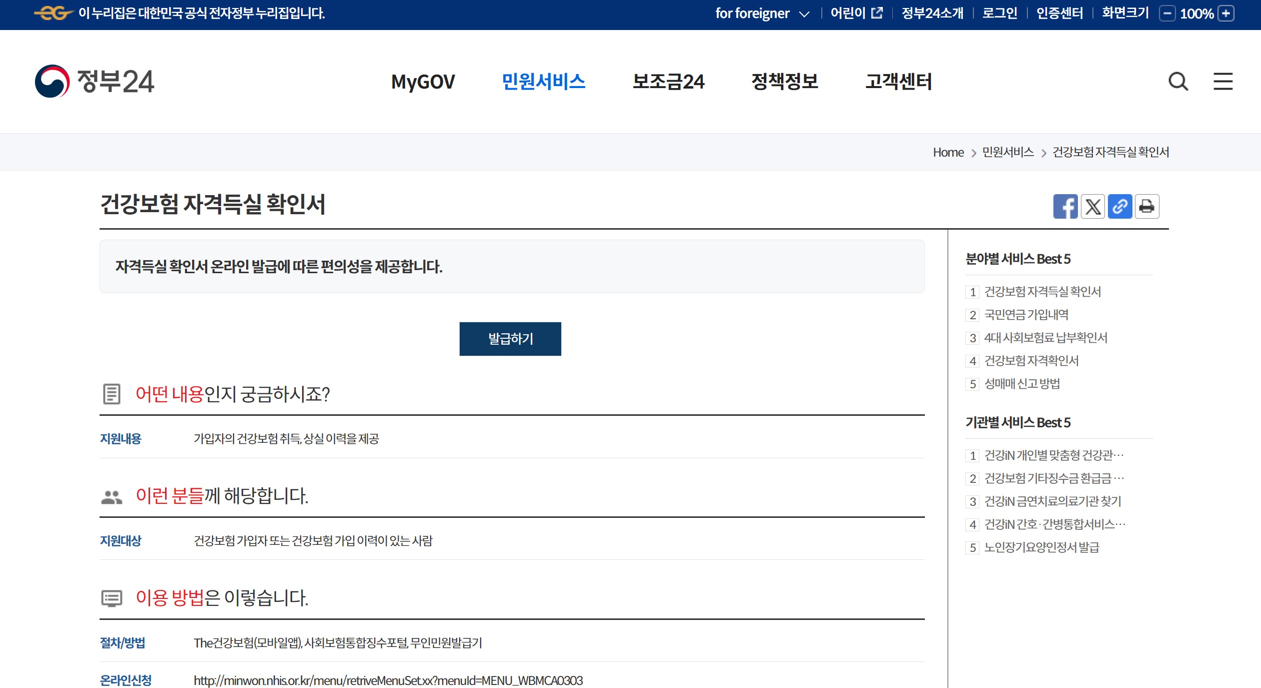 정부24 건강보험 자격득실 확인서 발급 하기