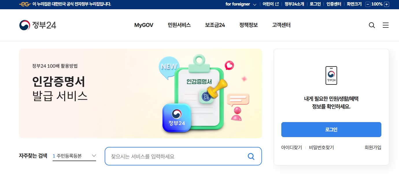 정부24 홈페이지