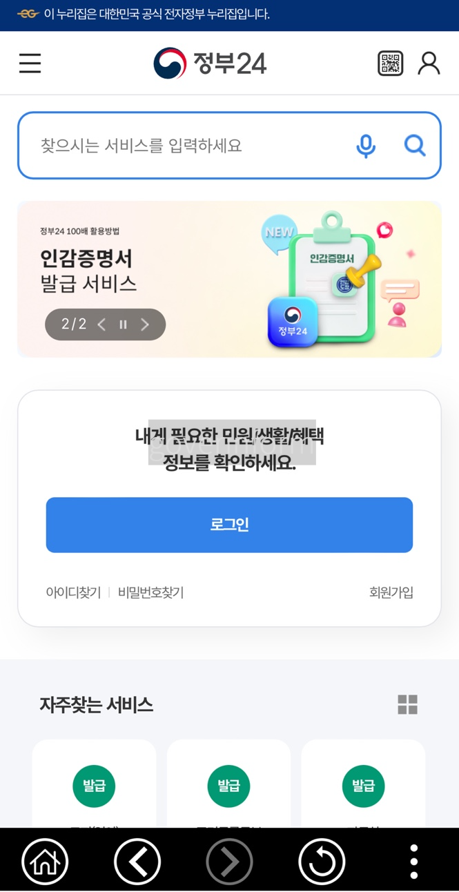 1. 모바일에서 정부 24 앱을 다운로드합니다.