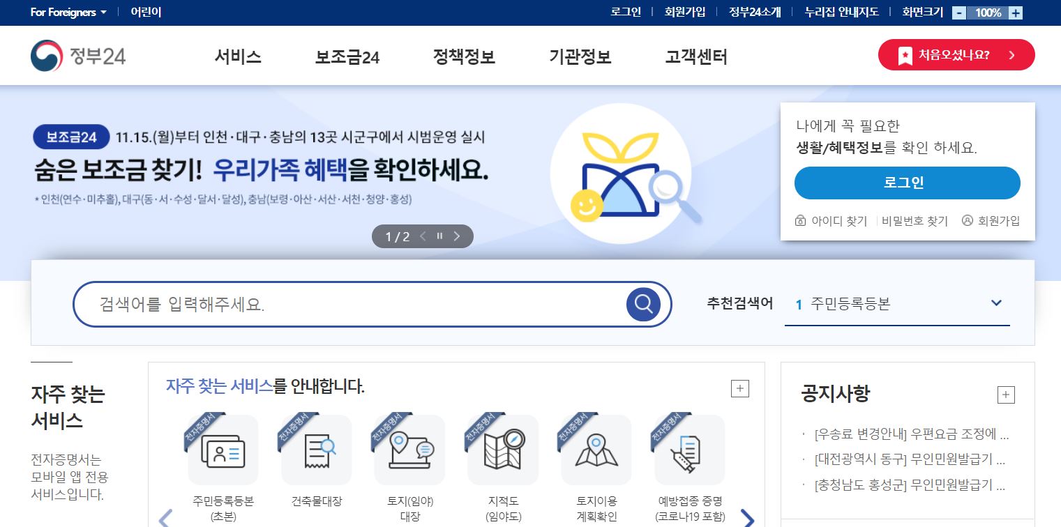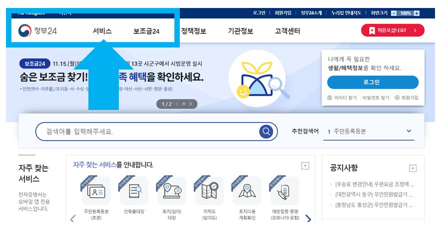 1. 먼저 포털 검색창에 정부24를 입력하고 홈페이지에 방문합니다.