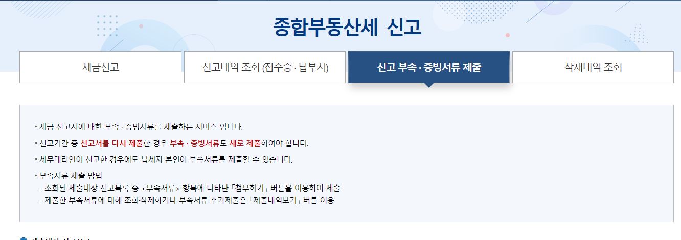 신고 부속·증빙서류 제출을 하는 것도 같은 페이지에 있습니다. (https://www.hometax.go.kr)