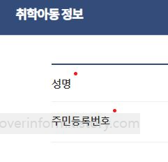 인증이 완료되면 세대주 즉 보호자(아동의 보호자) 정보인 성명. 주민등록번호. 주소를 입력하게 되어있습니다.
