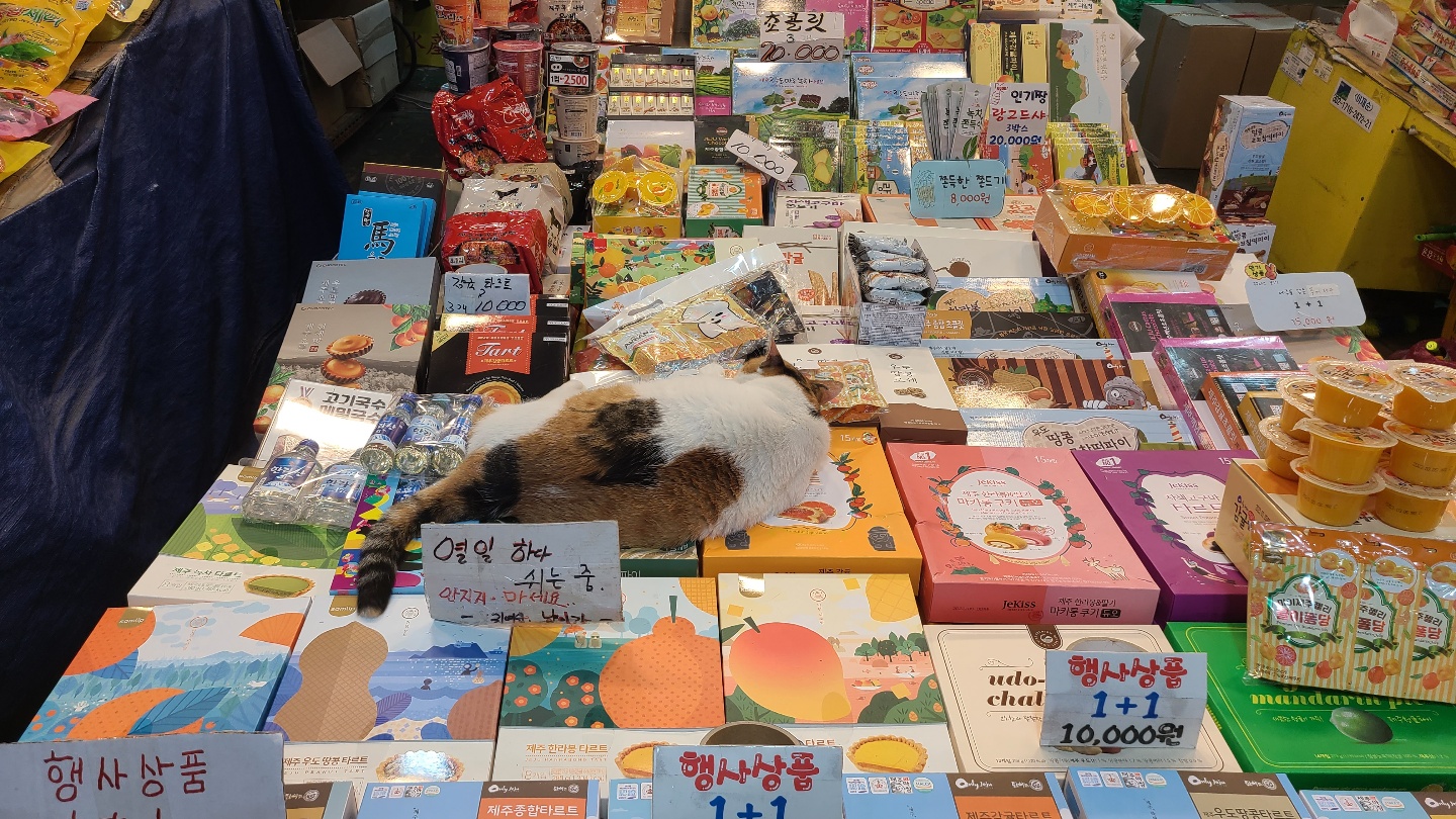제주 특산물 파는곳에 인기 많았던 잠자는 고양이 ㅋㅋㅋ 만지면 안돼요.