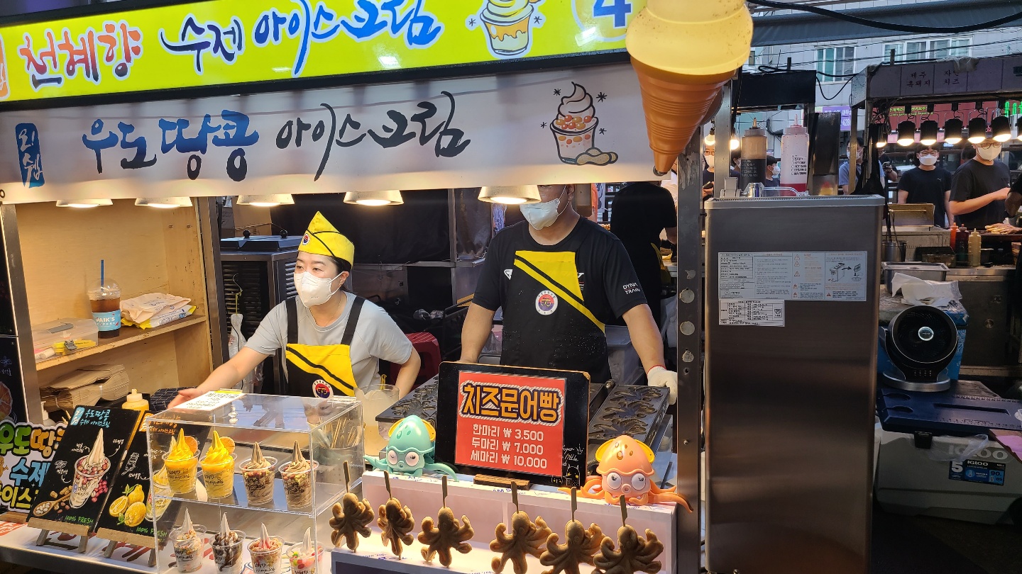 디저트나 간식류예용 치즈문어빵, 아이스크림ㅋㅋㅋ 우도땅콩으로 만든 아이스크림 ㅎㅎㅎ