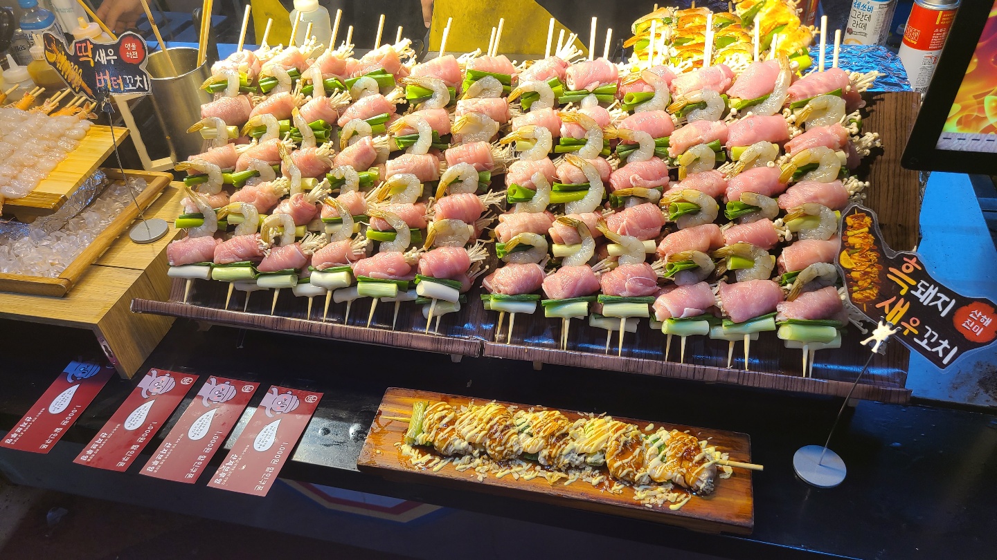 흑돼지 버터구이는 흑돼지 말이 파 새우 이런 조합으로 꼬치를 만들어줍니다 ㅋㅋㅋ