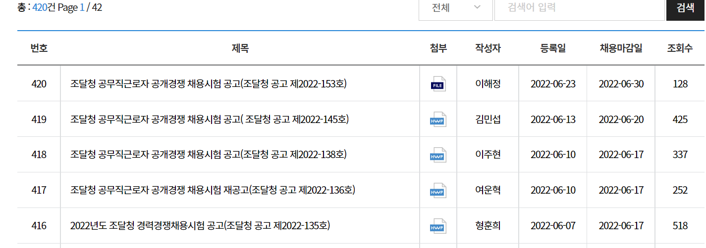 이제 코로나도 완화되면서 많은 사람들이 채용시장에 나올것으로 보입니다. 조달청 채용정보도 인기있는 채용공고중 하나입니다.