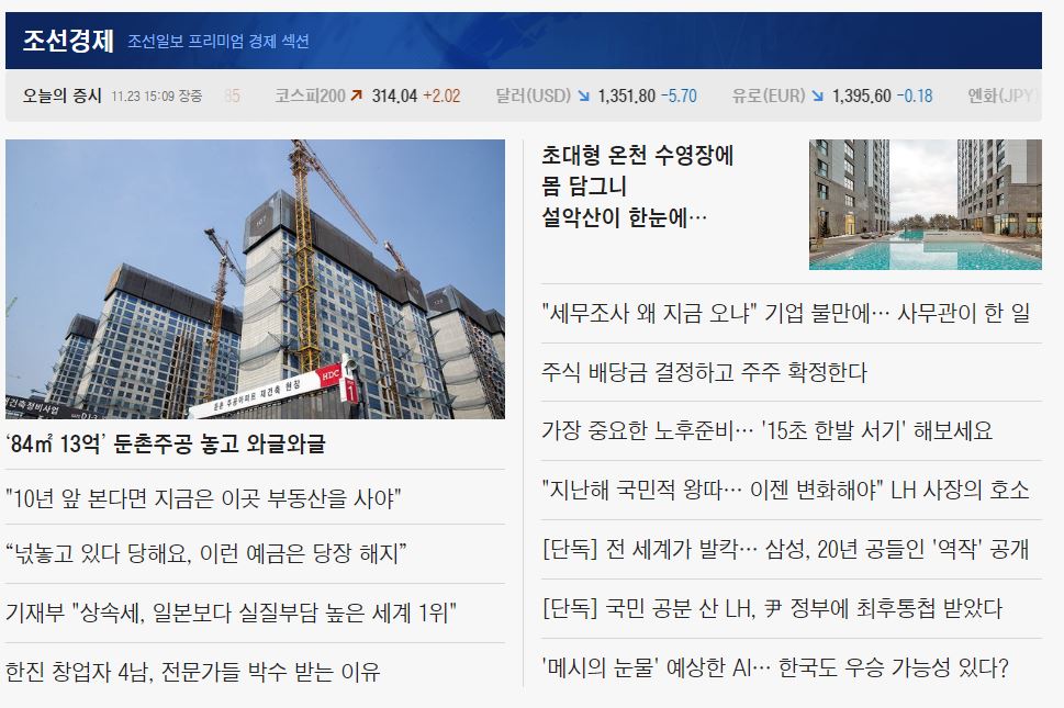 조금더하단으로 내려가다보면 경제 부문 신문기사가 있습니다.
