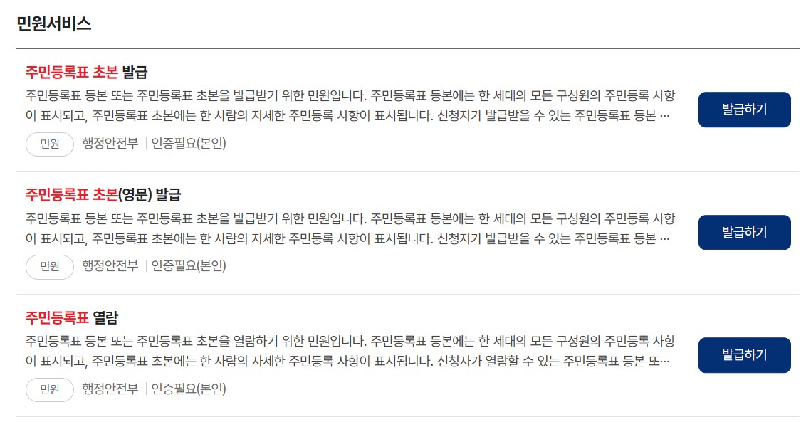 주민등록표 초본 발급 방법 안내 (www.gov.kr)