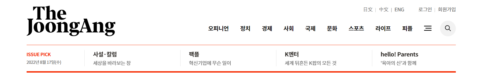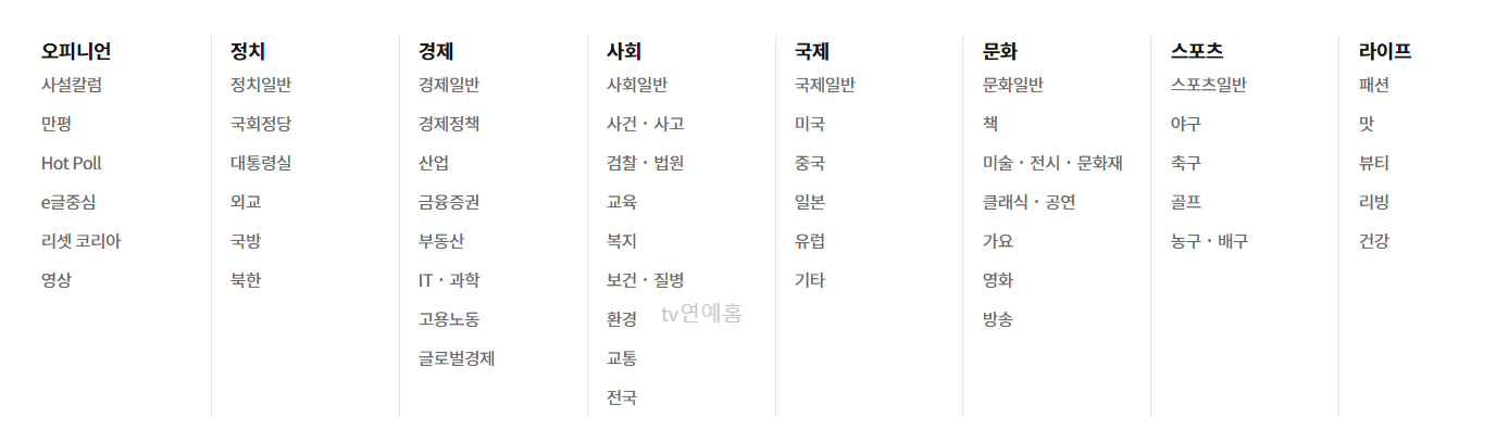 홈페이지에 가면 오피니언, 경제, 사회, 국제, 문화, 스포츠 등 분야별기사를 볼수있게 정리가 되어있으니 원하는 분야를 클릭하면 됩니다.