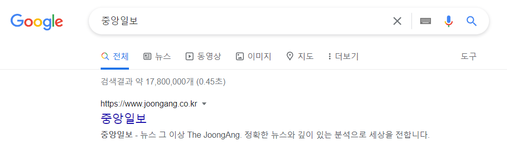 중앙일보를 포털검색창에 입력하면 주소가 나옵니다. 홈페이지에 접속합니다.