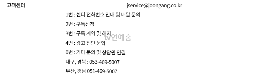 2. 중앙일보 고객센터 전화번호