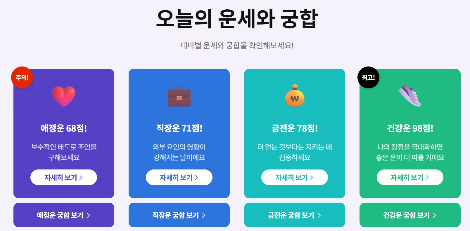 2. 돈/직장/사랑/건강 카테고리 운세 보기