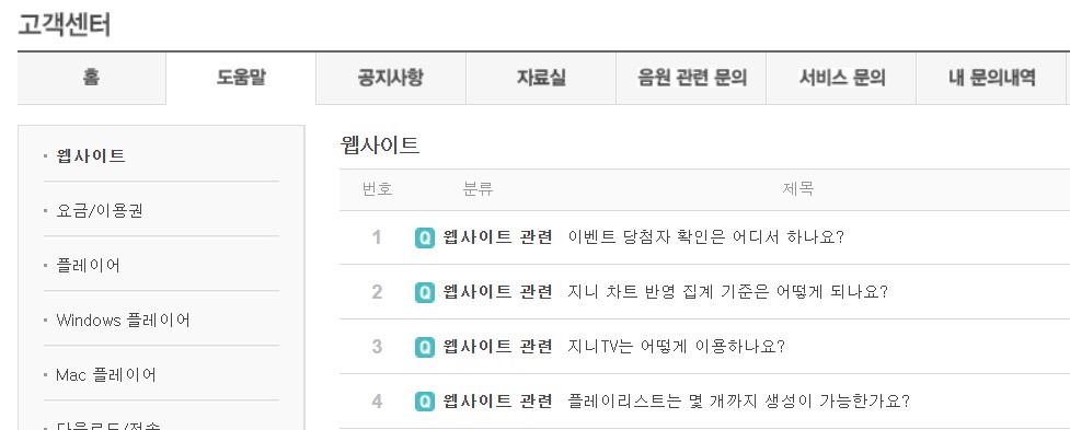 고객센터 도움말 - 지니