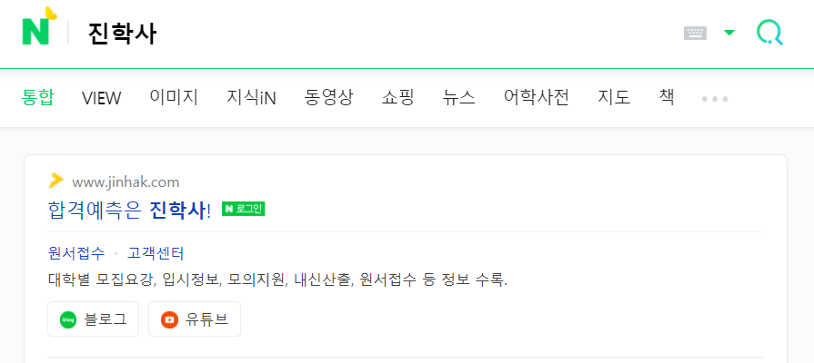 구글에서도 진학사 홈페이지 주소가 상단에 나옵니다.